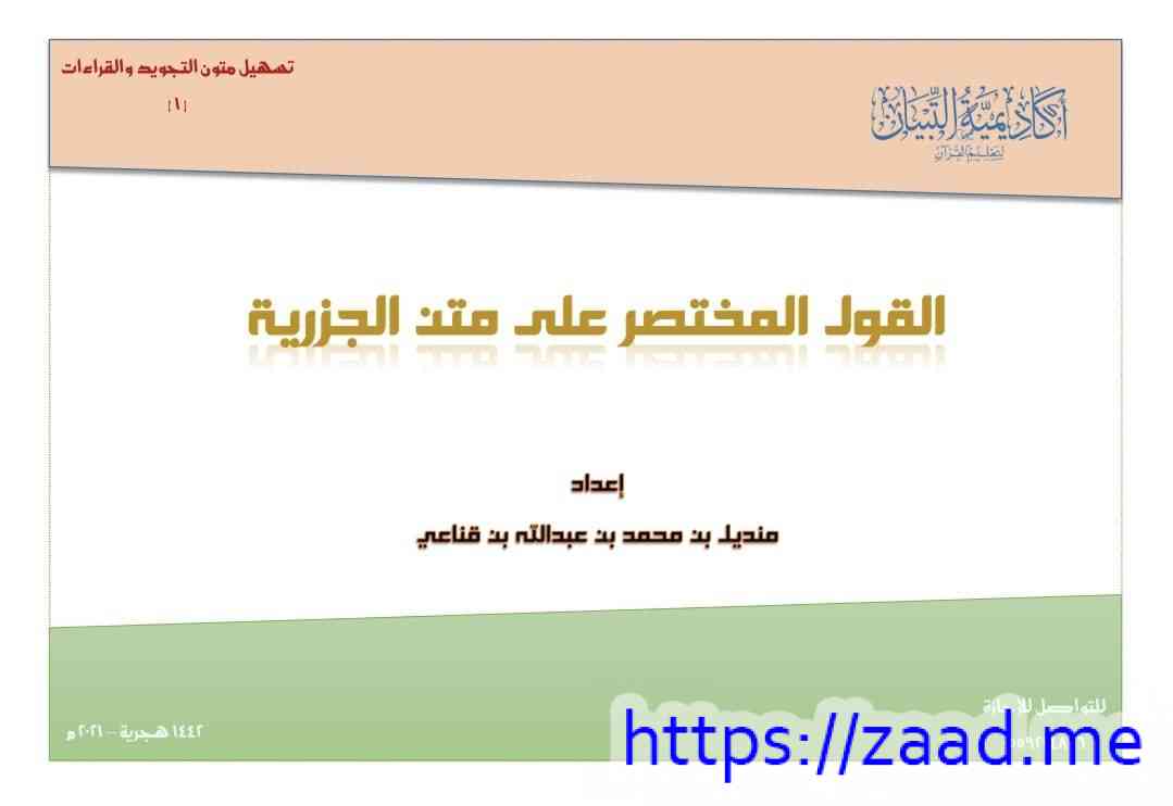 تحميل كتاب القول المختصر على متن الجزرية pdf – منديل بن محمد